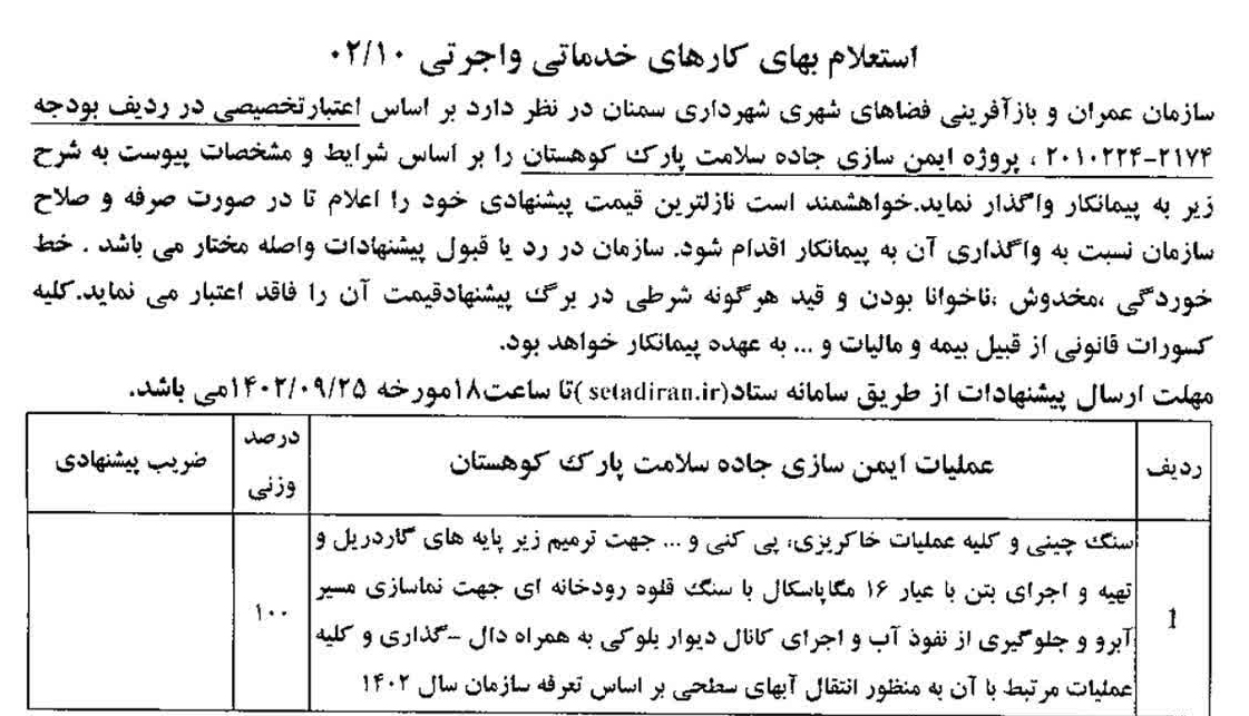استعلام بهای کارهای خدماتی و اجرتی سازمان عمران
